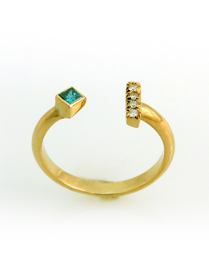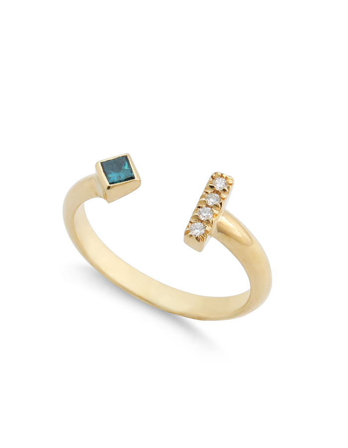 טבעת זהב צהוב פתוחה עם יהלומים Salt & pepper