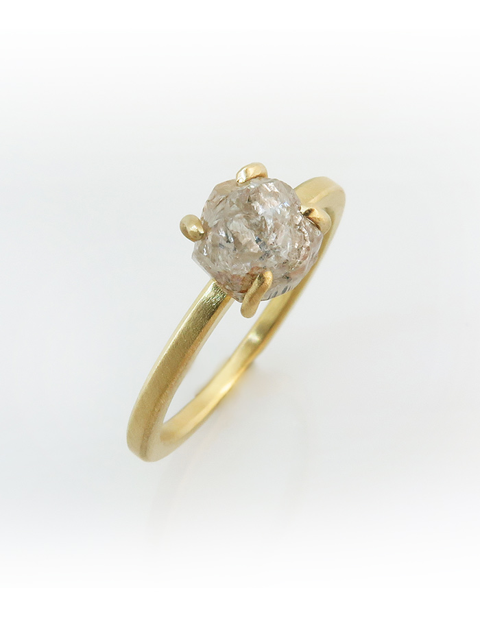 טבעת מיוחדת במינה, שילוב מנצח של עדינות וגסות במפגש בין הזהב המלוטש ליהלום הגולמי