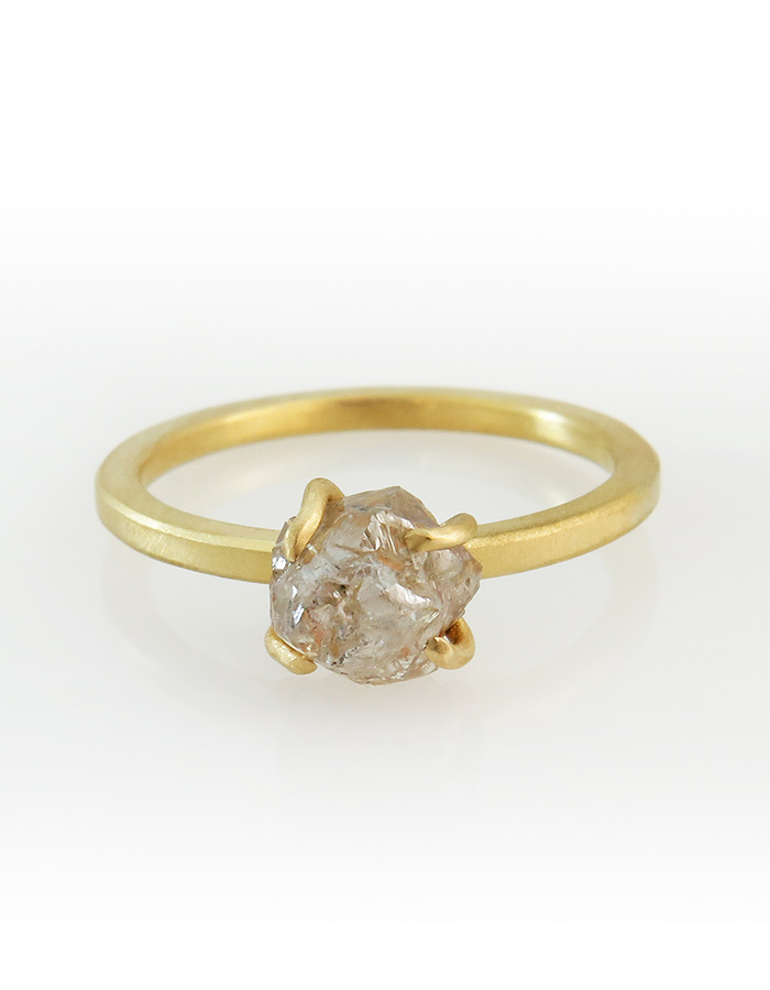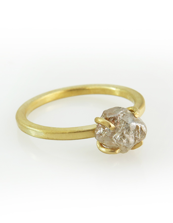 טבעת זהב צהוב 14 קרט ויהלום גולמי בגודל 2ct