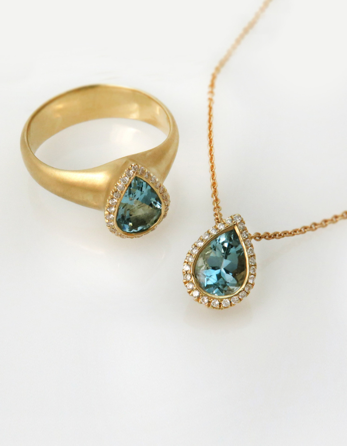 טבעת אקווה מרין ויהלומים