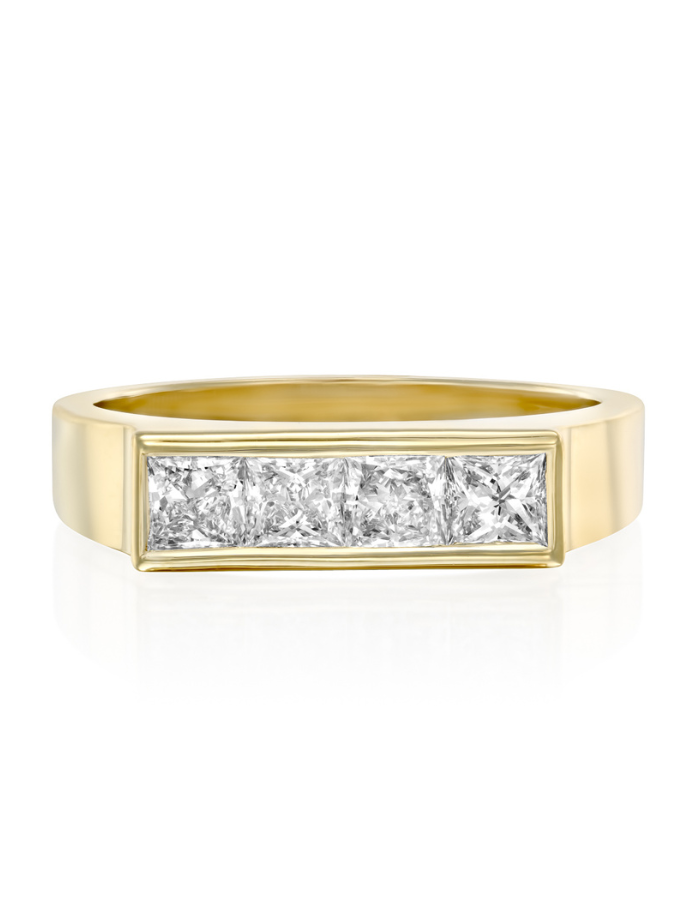 טבעת חותם מדהימה עשויה זהב 14K ומשובצת ארבעה יהלומים