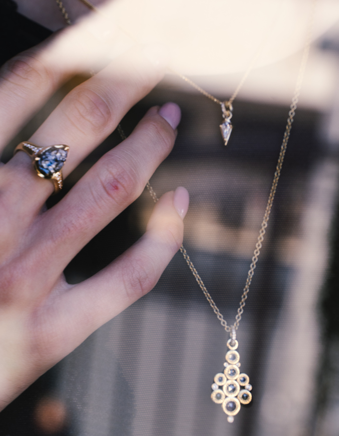 שיבוץ היהלום בצבעו היחודי על רקע הזהב מבליט אותו ונותן מראה מרשים ויוקרתי.