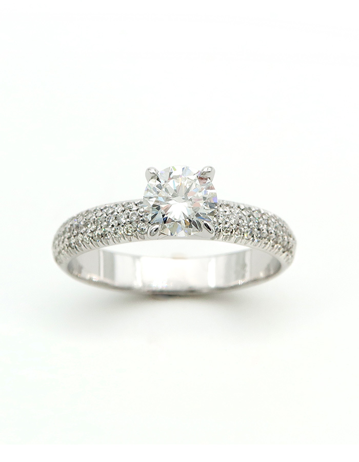 טבעת יהלום סוליטר בשילוב שיבוץ פאבה