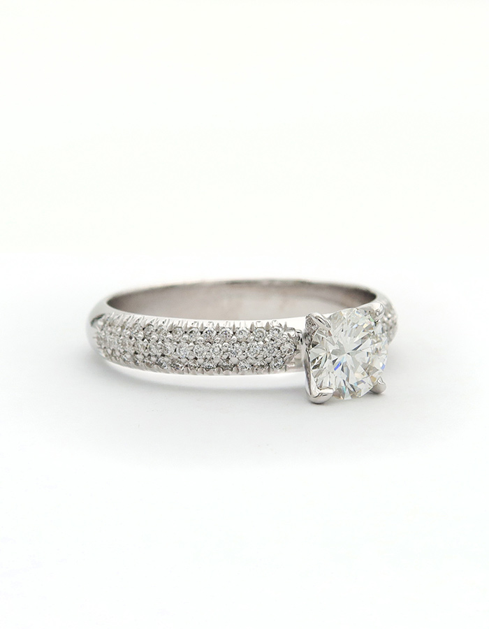 טבעת אירוסין יהלום סוליטר בשילוב שיבוץ פאבה
