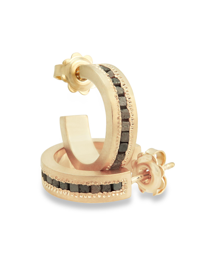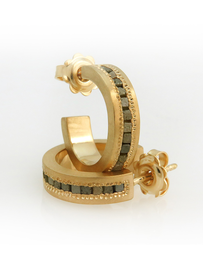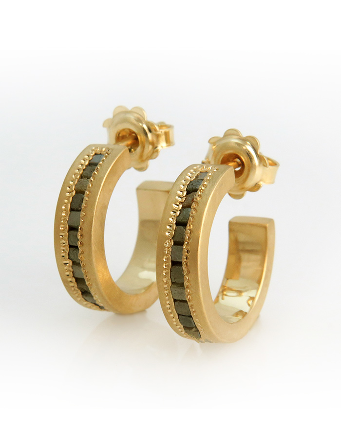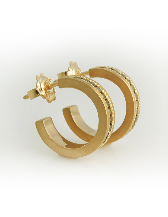 את הזהב עיצבנו כך שהעגילים והיהלומים המשובצים בהם ישתלבו בהרמוניה ויהיו בסגנון שנע בין גס לעדין ונותן לתכשיט המון אופי וייחודיות.