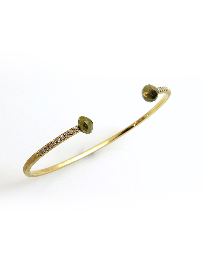 צמיד שרווול יפיפה ומיוחד שיוצר מ-14 קראט זהב ושובץ ב-20 יהלומים טבעיים ו-2 יהלומים בחיתוך Rose